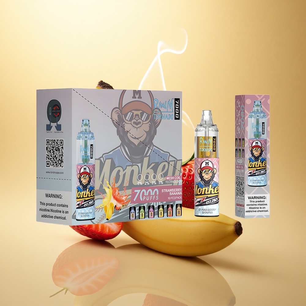 RandM Fumot Tornado 7000 Puffs Φράουλα Μπανάνα με Πλέγμα και Ρυθμιζόμενο Αέρα