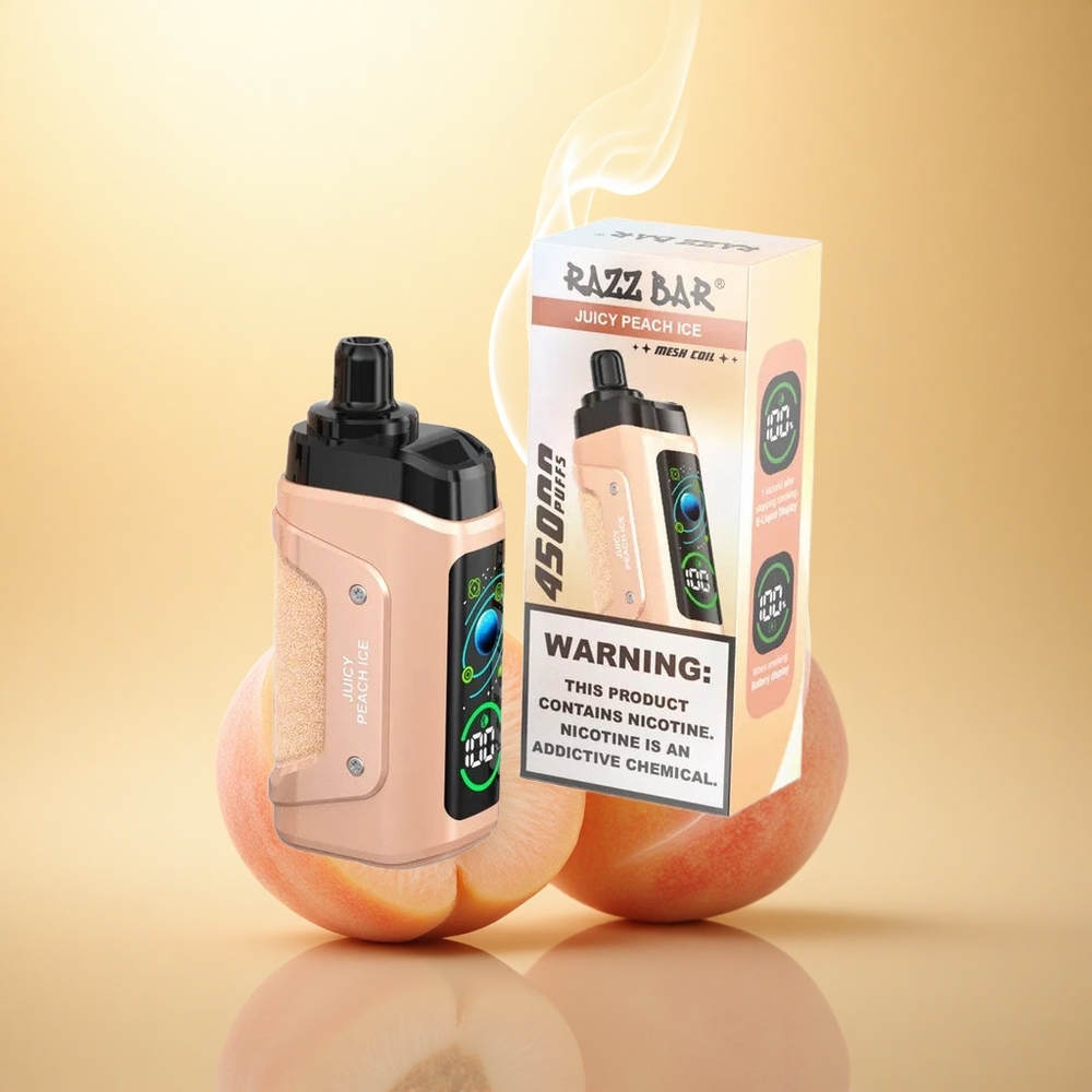 Razz Bar 45000 Puffs Γλυκό Ροδάκινο Πάγο με Ρυθμιζόμενη Ροή και Πλέγμα 1.0 Ohm